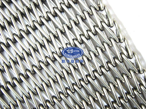 特点:此网带由双股左螺旋或双股右螺旋盘条与一根串条连接而成,网带拼接方便,网眼一般小于单股加强编织的网眼,编织牢固,不易变形,维修方便。平衡型编织网带集中了金属编织网带的各种优点,由于具有弯曲教深的串条,使各个螺旋盘条的能得到正确的定位,因此,最大限度的减少网带的变形和延伸。